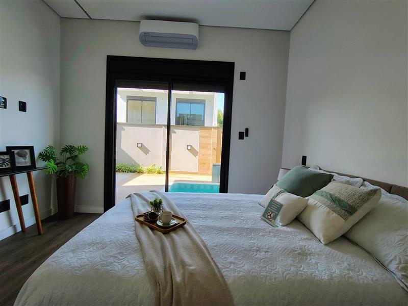 Casa Térrea Nova de Alto Padrão em Condomínio Fechado – Conforto, Modernidade e Sustentabilidade Excelente oportunidade para quem busca qualidade de vida, segurança e sofisticação. Esta casa nova possui projeto moderno, ambientes integrados e acabamento de alto padrão, ideal para quem valoriza conforto e funcionalidade. Terreno: 255 m² Área construída: 139,30 m² Destaques do imóvel: • 3 suítes amplas e bem iluminadas • Escritório ideal para home office • Sala de estar com pé-direito alto, trazendo amplitude e sofisticação ao ambiente • Lavabo • Cozinha integrada ao living • Espaço gourmet perfeito para receber amigos e familiares • Piscina privativa • Garagem para 4 veículos • Sistema de energia com placas solares, proporcionando economia e sustentabilidade • Excelente padrão de acabamento Documentação em ordem, pronta para financiamento bancário. Valor de venda: R$ 1.500.000,00 Uma residência moderna em condomínio fechado, ideal para quem busca segurança, conforto e um imóvel novo pronto para morar. Agende uma visita e conheça este excelente imóvel. Tel. 11 98367-3826